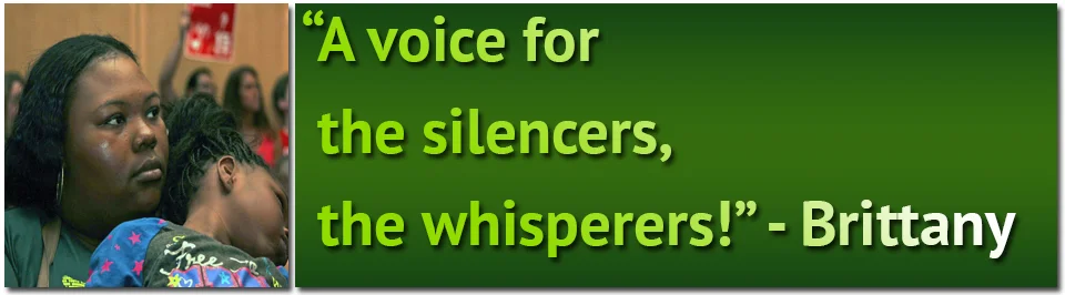 But as an individual person, I can’t make somebody do what I want them to do. So it’s just if I feel like I’m the only person with the voice inside that one store, where I know they know that I’m not afraid of higher authorities, then they look at me as inspiration, like she can do it, she can do it and they push me forward. So it’s just like if I have a voice for 30 employees at my job then I’ll be that one voice. A voice for the silencers, the whisperers!