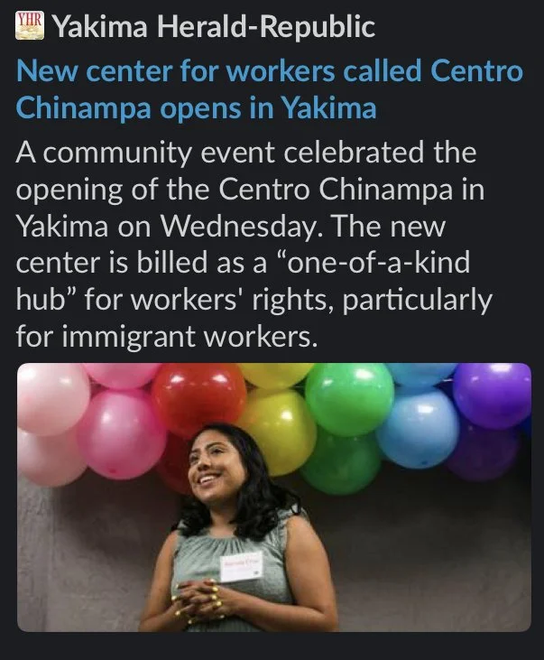 And earlier this week, our sibling organization Fair Work Center celebrated the grand opening of Centro Chinampa, a new worker center in Yakima! It's a place for people across Central WA to come together as immigrants, workers, and community to defend their rights, get involved in politics, and build collective power. It’s the first and only worker center anywhere East of the Cascades.